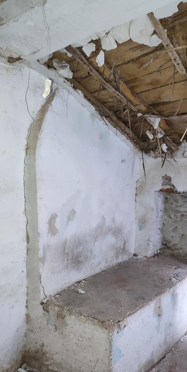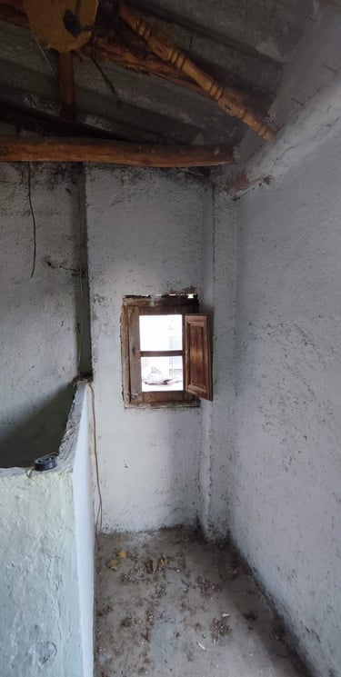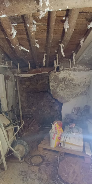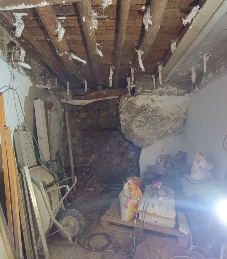Cuando vio la casa por primera vez, se encontraba prácticamente en ruinas. El interior estaba muy deteriorado, el tejado había caído sobre el interior y la estructura mostraba el paso del tiempo hasta el punto de que la vivienda había llegado a deformarse ligeramente. Aun así, entre los muros de piedra y los elementos originales, Paco vio la oportunidad de devolverle la vida.