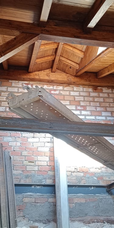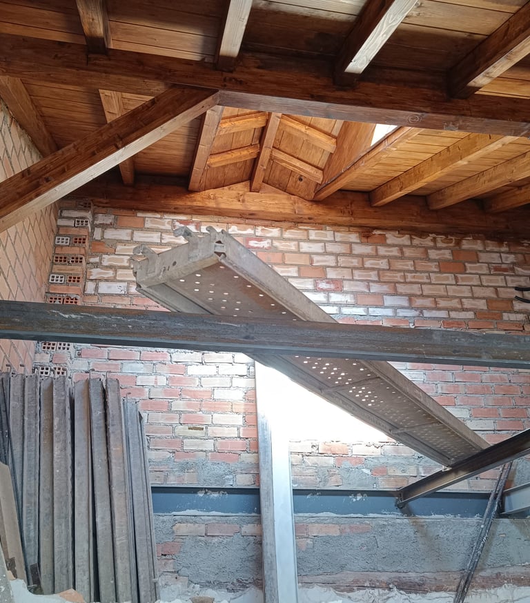 Los muros de piedra fueron limpiados, rejuntados y consolidados con morteros de cal, respetando la forma tradicional de trabajar estos materiales. Allí donde fue necesario se incorporaron tablazones y maderas antiguas recuperadas, integrándolas en la estructura visible de la casa.