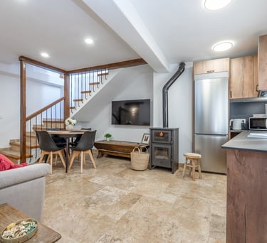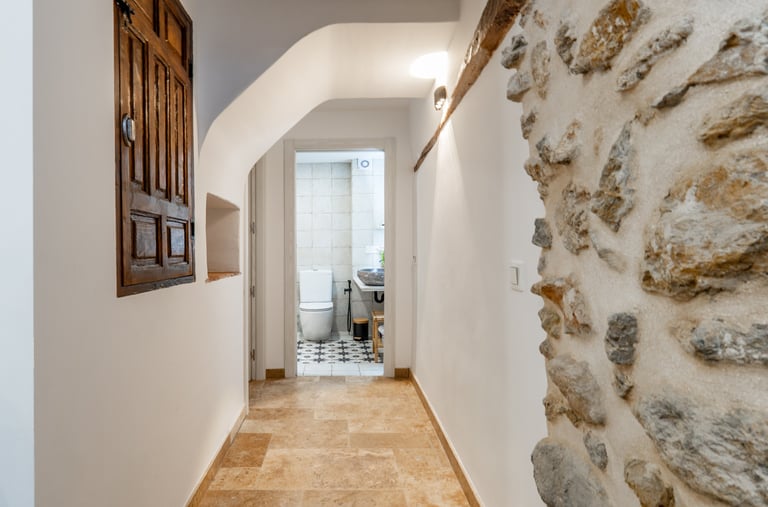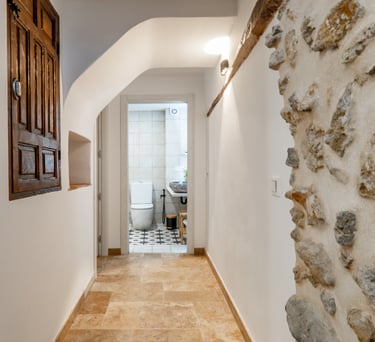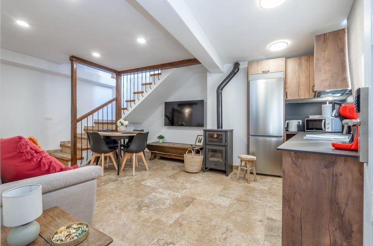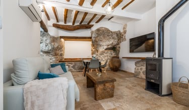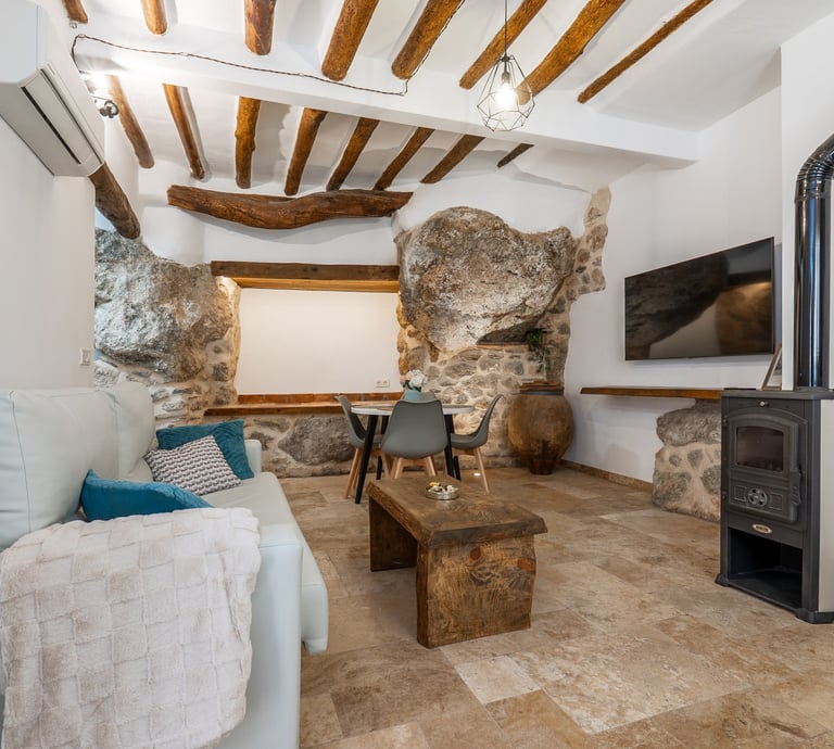Alojamiento auténtico de pueblo, donde la piedra, la madera y las rocas naturales crean un espacio único y acogedor
